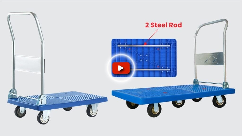 An Industrial Trolley is a sturdy, wheeled platform used to transport heavy materials in warehouses and factories.
