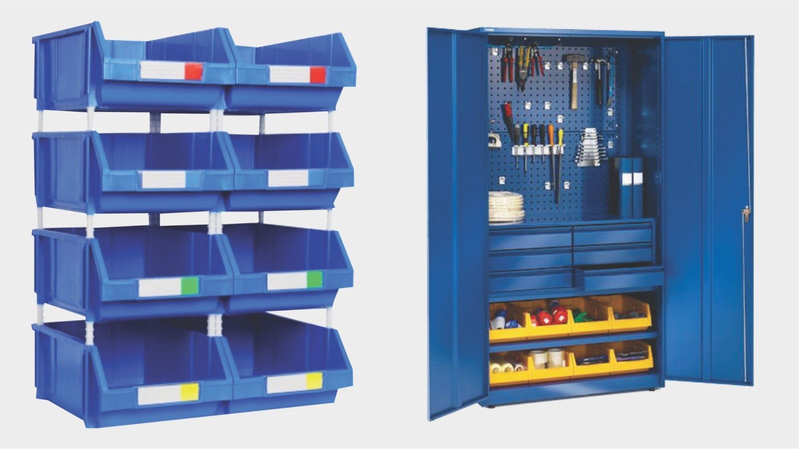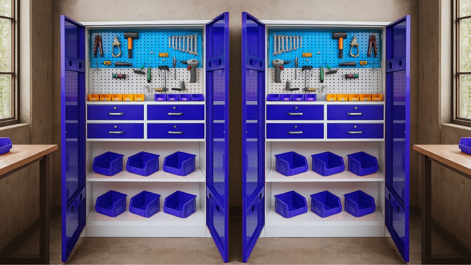 The tool cabinet provides efficient storage with multiple drawers for organizing tools and accessories. Built for durability, it keeps your workspace clean and productive.