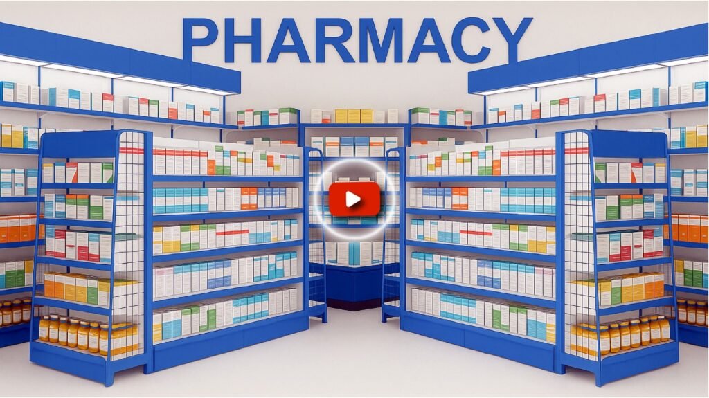 Clean, professional pharmacy racks that ensure organized medicine storage and high product visibility. Designed to enhance customer experience and workflow efficiency.